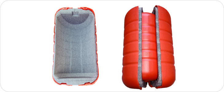 - The EPP foam acts as a bufef r layer protecting the inner skin, absorbing shocks from the outer skin and increasing durability