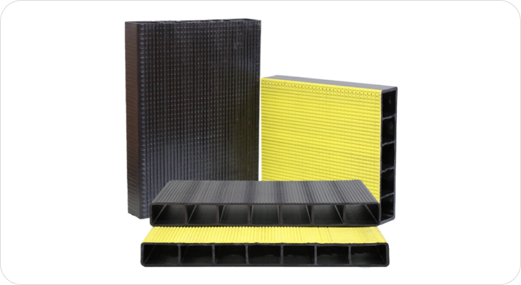 For use as an exterior pad for landing pads and barges, this product is non-slip and offers excellent durability and resistance against shock and abrasion